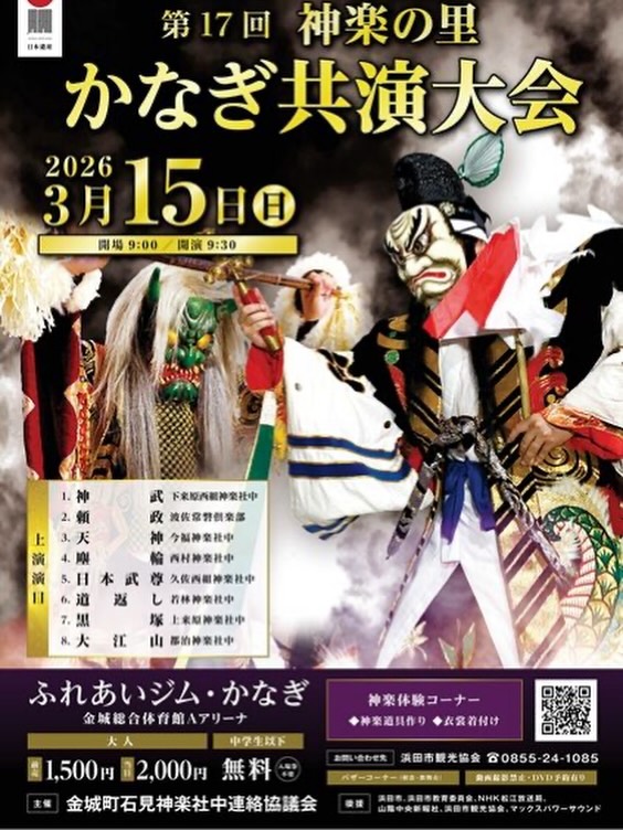 浜田市内の石見神楽社中が出演します。