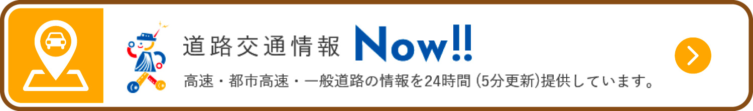 公益財団法人日本道路交通情報センターが提供している、通行止や渋滞等の道路交通情報を提供するウェブサイトです。 高速・都市高速・一般道路の情報を24時間(5分更新)提供しています。 下のバナーからアクセスできます。